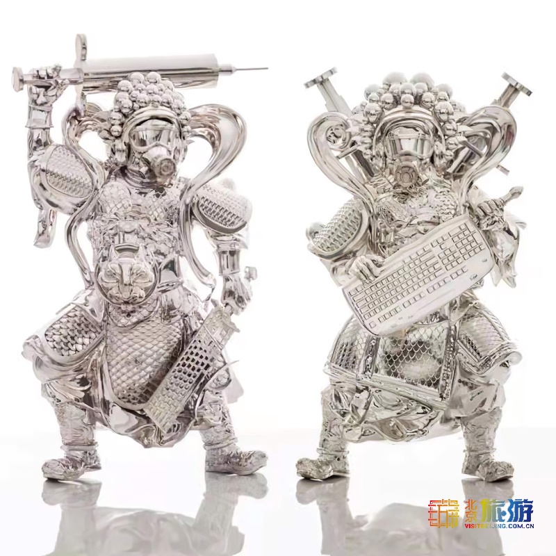 《世界是银色的》展览跨越JEN北京新国贸饭店一层至三层公共区域,展出作品涵盖雕塑、装置艺术、架上绘画、版画等多种艺术形式,集结多位当代艺术家共计50余件作品。其中颇为瞩目的当属艺术家宿志鹏带来的雕塑作品《键盘江湖之门神》系列,其作品应用了新锐的塑造技术,在疫情的大环境下,作品体现出虚拟世界与现实世界之间冲突的融合与对撞;由知名当代艺术家景晓雷创作的不锈钢雕塑代表作品《灵山》、《芒》亦将呈现;当下极具话题度的青年艺术家杜飞辰的《种子计划》系列坦培拉作品,以生物思维解构图像,用细腻的笔触和独特的构成方式给客人带来艺术的享受;还能看到著名潮流艺术一派的代表人物韩国艺术家李承九的《爱在空气中》系列最新作品;雕塑家王大朋先生塑造的灵兽形象凝结自然灵气,将玉的质地,融入到雕塑作品中,寥寥数刀,简朴有韵味;新锐艺术小组“落听”带来的未来系列雕塑和装置作品,将其对机器人最浪漫的想像,分割成层叠交错的板块,让每一束光在其中沉浮往返,碰撞映射。透过这些作品,可以了解到各位艺术家不同的艺术理念,而这些作品的共通点——银色,也由艺术家们做出了各异的诠释。他们以丰富多元的创作,展现了当代艺术全新的面貌与巨大的潜力。