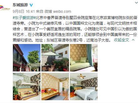 北京中香界普渡寺别墅四合院座落在北京故宫博物院东侧的普渡寺旁。小院为中式装修风格,以中国国粹文化为底蕴,与现代文明技术相结合,营造出了一个美丽宜居的精品院落。小院随处可见中国引以为傲的国粹艺术,在小院享受舒适闲逸生活的同时,还能够领会到中国美带来的一份震撼和感动。地址:东城区普渡寺东巷2号,近南池子大街。