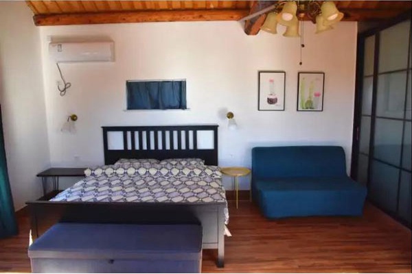 湖畔山居的客房不多,但每个房间,都被女主人设计得别有一番情调,东屋看山,西屋望水,楼上听涛,楼下闻香,各有情趣。不过,我最喜欢的还是被朝霞温暖的“山景房”,这个名字还是随行的女孩给取的。