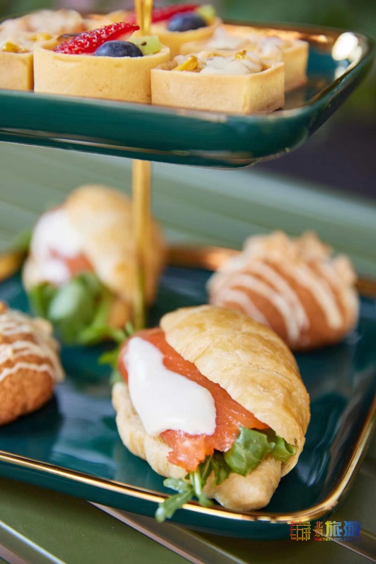 美味的点心有意大利冰激凌,提拉米苏,熏肉香葱乳蛋饼,咖啡泡芙,蔬菜乳蛋饼,水果挞,牛角三明治(三文鱼、芝麻菜、酸奶油),水果杯、芒果圣代。