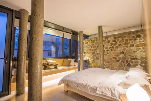 黄栌花开民宿坐落在幽岚山脚下,夹括河边的小村庄中。10个院落,从两居到四居房型景观各有不同。设计师在保留老屋格局的基础上,把自己对乡村和自然的理解融入其中现代设计之中。有节制的奢侈,有品质的节俭。身处黄栌花开的庭院中,你一定能感受到隐居乡里想要传递的关于生活的态度。