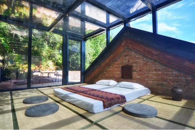 东篱山舍,取意“采菊东篱下、悠然见南山”的意境,追求都市生活向乡村的回归,隐匿于依山傍水的一片静谧山谷中,放松身心的好去处。小院儿有三个套房,其中之一是360度大玻璃观景loft。幕天席地的野宿感觉,在北京民宿里,并不多见。