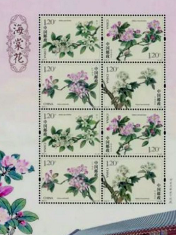 昨天,《海棠花》特种邮票首发,一套四枚,以纪念周恩来同志诞辰120周年。