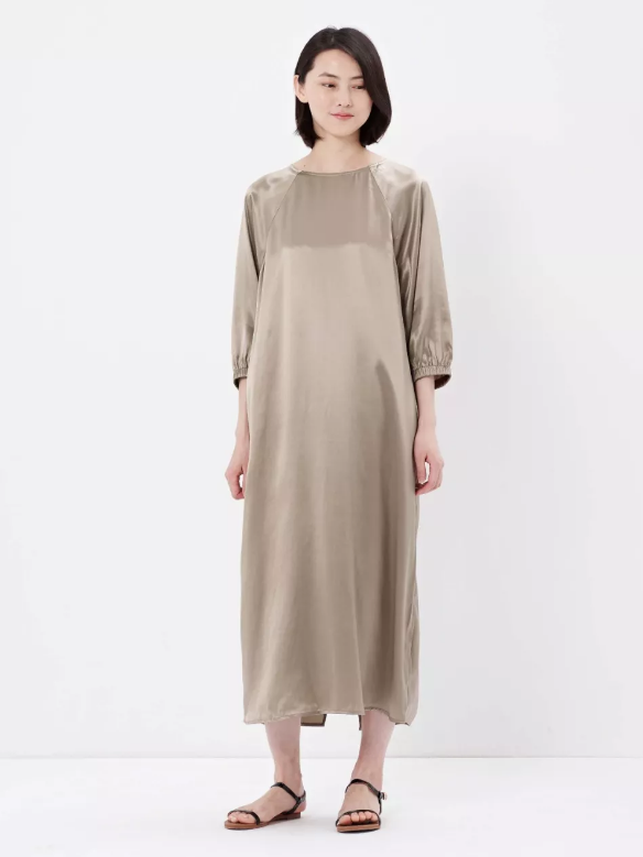 100%环保真丝,小A廓形,简洁柔美,局部抽褶设计,浪漫女性化。