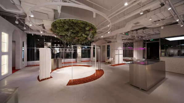 特别的环形360陈列展示厅,营造别致的法式浪漫艺术氛围,花艺倒置吊顶天花设计坐拥全球时尚潮流品牌。