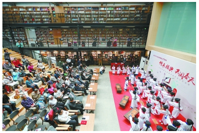“共阅”是指无门槛阅读,藏书楼面向社会开放,大众可以无偿阅读。试运营一年来,藏书楼接待读者4.2万人次,图书借阅2000人次,5000册次。