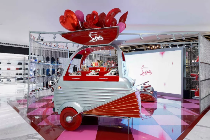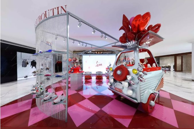 2019年4月23日,Christian Louboutin LOUBI CART限时概念店于北京SKP 1F 隆重揭幕。限时店设计灵感来源于Christian Louboutin先生对于旅行的热爱以及对童年时期的美好回忆。整个空间被打造成一个色彩缤纷,俏皮灵动的游乐园,仿佛是回到了Christian Louboutin先生的童年时光:坐在充满欢声笑语的碰碰车里,透过红色和粉色的气球望向天空,折射出五彩斑斓的梦幻光影。