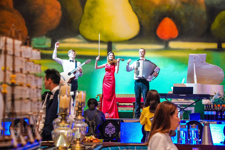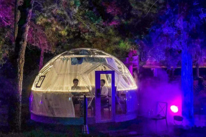 踏着石板穿过花园,几个被灯光点亮的星空帐篷最醒目。夏日的清风伴着烤肉的香味扑鼻而来,冰爽的俄啤德啤和俄式烤肠是每桌必点,孩子们在草坪上嬉笑玩耍着。“我们每天营业到凌晨两点,到了半夜时人气儿依然旺!”餐厅经理指着菜单说,俄式烤列巴、俄罗斯大串、小龙虾等时兴菜品最受欢迎。这时,一支俄罗斯摇滚乐队登场表演,附近一桌的年轻人惊喜地抬起了头,毫不吝啬地献上了掌声,伴着音乐声碰杯欢呼。