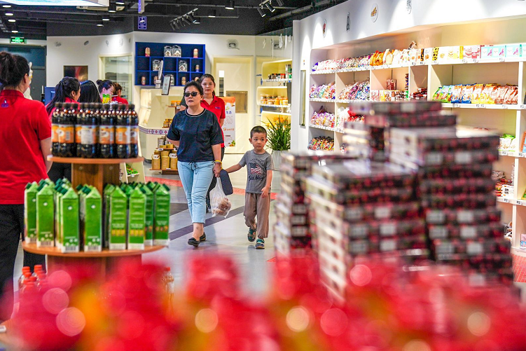 想去购物的人们,总能在“俄优品”生活方式体验店内找到心仪的货品。为配合夜间文化活动的开展,去年末北展新开设了“俄优品”店面,琳琅满目的俄罗斯进口食品、生活用品及油画首饰等艺术品吸引着顾客的目光。夜越深,这里的人气儿反而更旺,年轻人爱买巧克力、糖果和套娃,大爷大妈常在油面区和特价区挪不动步了。