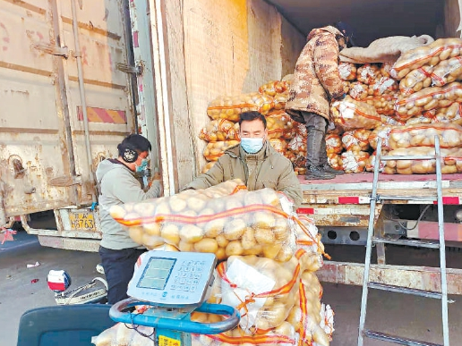 这边,一袋袋土豆从货柜车上被搬下来。那边,一排货柜车里装满了萝卜,商户们正在忙着装袋。一辆辆小货车上装满了土豆、大白菜、萝卜、葱头等冬储蔬菜,从新发地驶向北京市的四面八方,冬日的寒冷也挡不住这里交易的火热。
