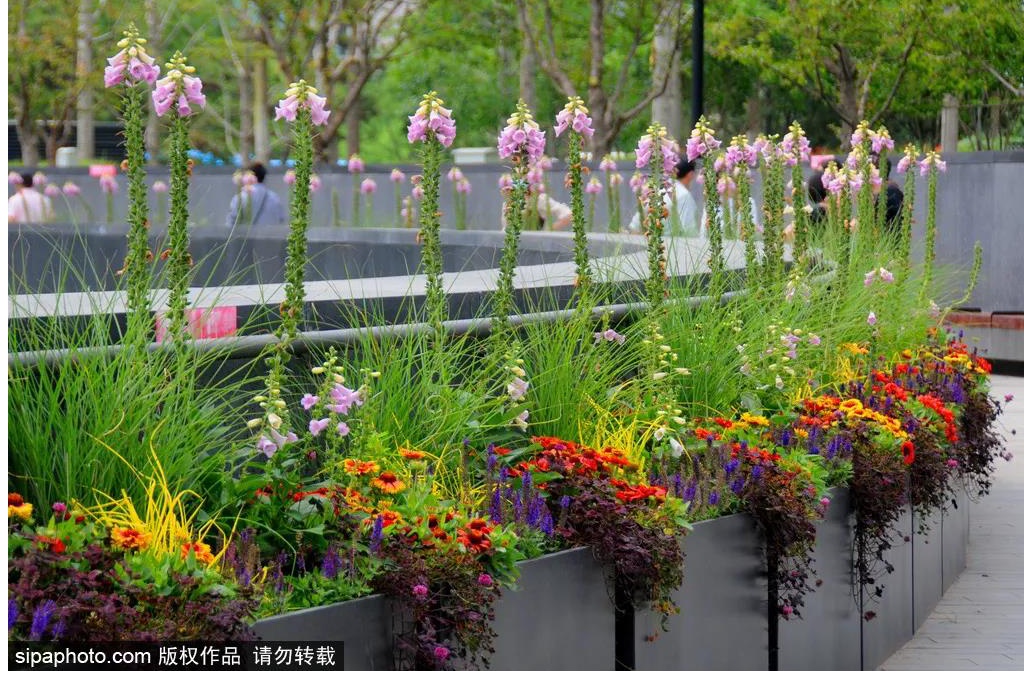 广场上夏花绚丽,仿佛置身于森林公园,逛街的同时还能收获一份好心情。