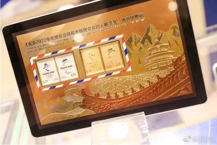 《北京2022年冬奥会会徽和冬残奥会会徽邮票金、银仿印》特许产品,以北京冬奥会会徽和冬残会会徽邮票为核心,以长城、鸟巢、天坛、中式建筑为设计元素,把中国文化底蕴、现代国际风格、冬奥运动特征融为一体,分为典藏版和珍藏版两款。