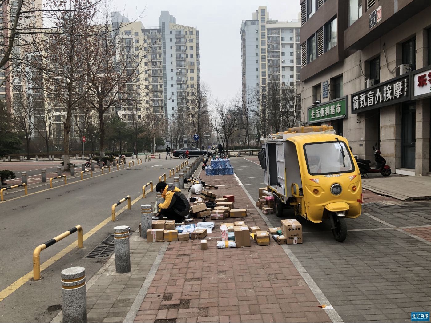 不过,在快递复工复产的同时,末端配送问题也逐渐凸显。由于疫情还未结束,不少小区为了防控需求禁止快递员进入,这给快递末端配送带来一些问题。朝阳区某通达系快递小哥告诉北京商报记者,目前末端配送以“等待”为主。他表示:“现阶段,由于小区的管控,快递人员均无法正常出入小区,因此每天只能将货品摆放至小区门口的空白区域,虽然部分小区规划了快递架等便民设施,但设施数量相比整个小区的快递量,不足以满足存放需求。”此外,该快递员还表示:“目前,我每天的送货次数在5次左右,只能等大部分居民拿完货物才能进行更新,减少了配送时效。”