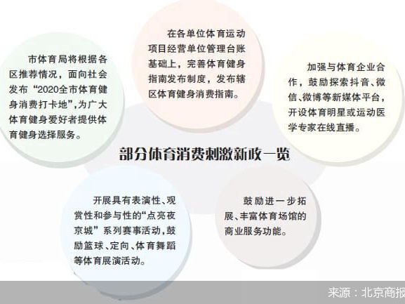 为提升体育消费额,进一步激发体育消费新热点,北京市将借助互联网传播优势,加强与新媒体平台的合作,围绕体育市场营销服务,为体育健身企业提供网上培训,进一步提升运营能力和服务品质。