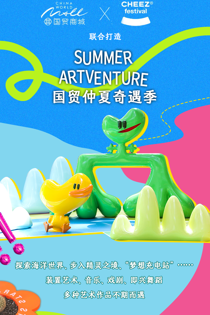 连续一个月京城最有艺术气息、最新鲜有趣的展览季已经开始啦!国贸商城携手Cheez Festival联合打造国贸仲夏奇遇季,探索海洋世界,步入精灵之境,“梦想充电站”……装置艺术、音乐、戏剧、即兴舞蹈等等,多种艺术作品不期而遇!