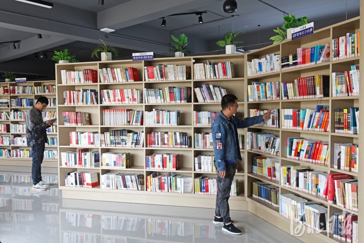 2021年5月12日,读者在河北省尚义县图书馆阅览。近日,河北省尚义县城区森林公园鸳鸯河畔的图书馆开馆试运行。该图书馆利用闲置房屋改造而来,面积约980 平方米,藏书近2万册。通讯员 武殿森 摄影报道