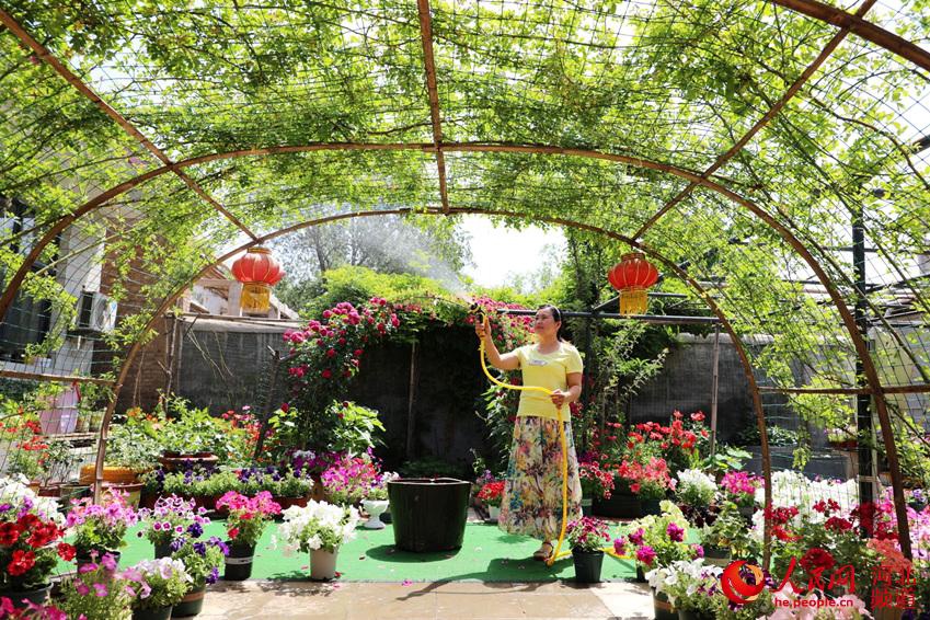 河北省平乡县小章村农家女武素霞向往淳朴自然的园林生活,在自家院子里种上了藤本月季、美女樱、勋章菊等各式各样的鲜花绿植,满院花香关不住,把普普通通的农家小院装扮成了绚丽多彩的“梦中花园”,先后被评为平乡县百佳美丽庭院、邢台市美丽庭院示范户。(姚友谅、薛霞)
