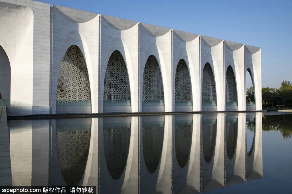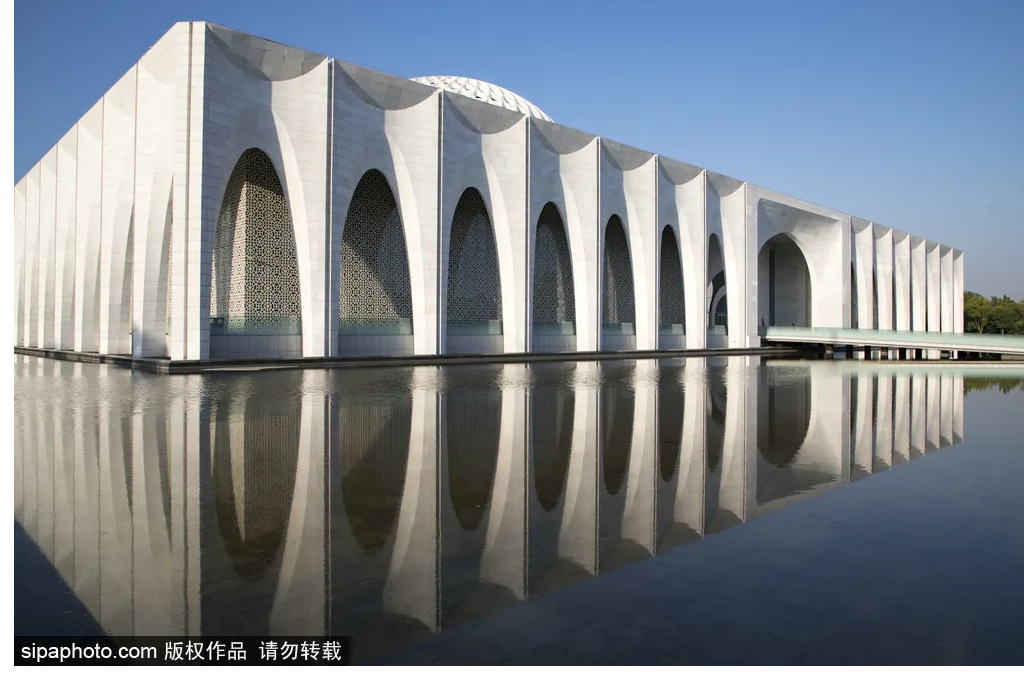 当整栋建筑倒影水中,弧形的花瓣形拱券更显清晰灵动,散发出优雅气质。