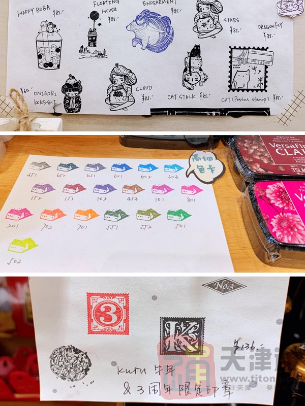 在天津,竟然有这么棒的手帐小店,真是淘到宝了!商品都是商贸公司进口过来的,有很多设计师款作品,特别是印章,精致至极,细微之处见品质,设计风格也迥然不同,美国的印章偏具象,日本的偏生活化,马来西亚以花草类为主,除了肉眼可见的风格不同外,每个印章选用的材质和颜料也不一样,比如再生木,不仅环保还增强了印章的质感!