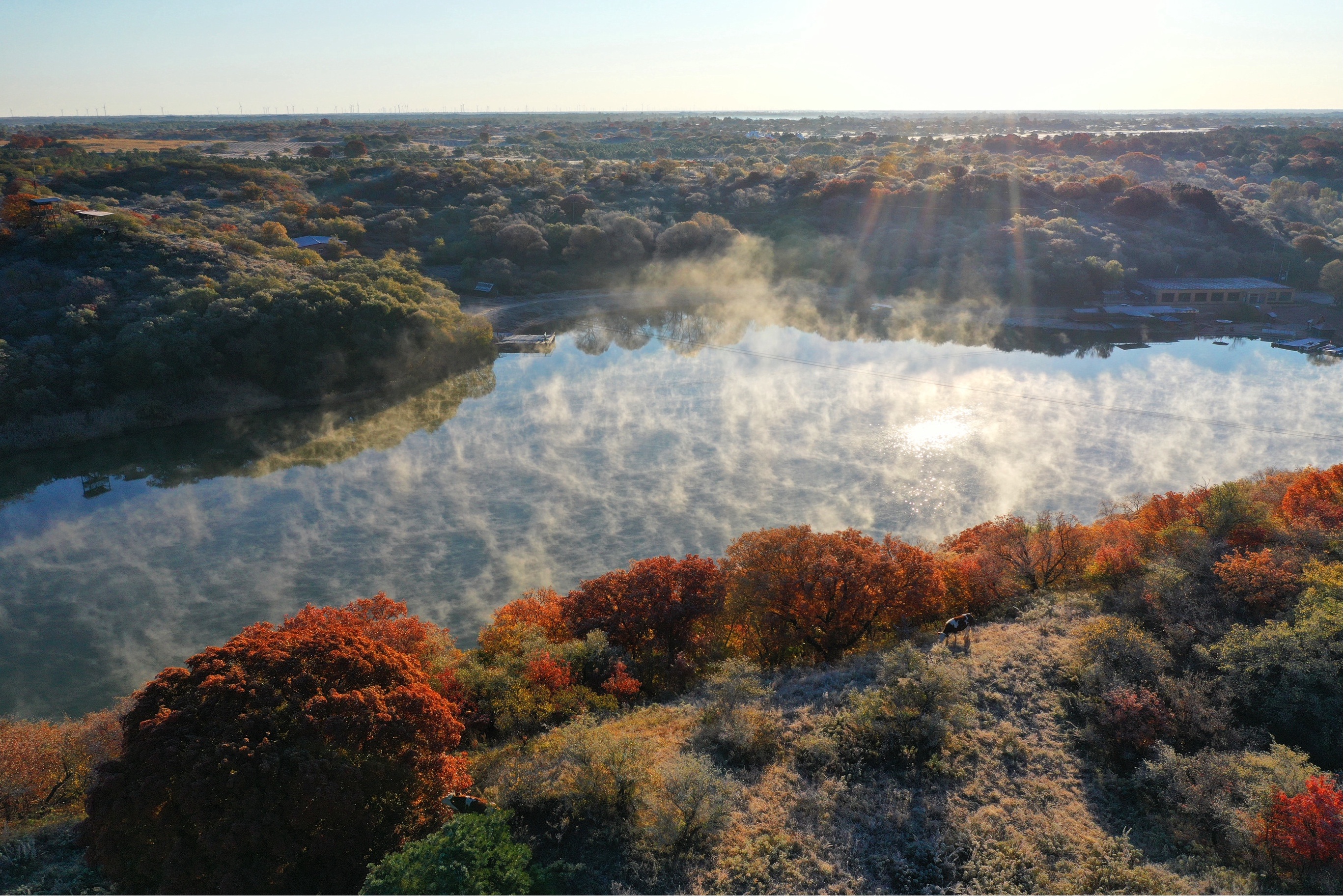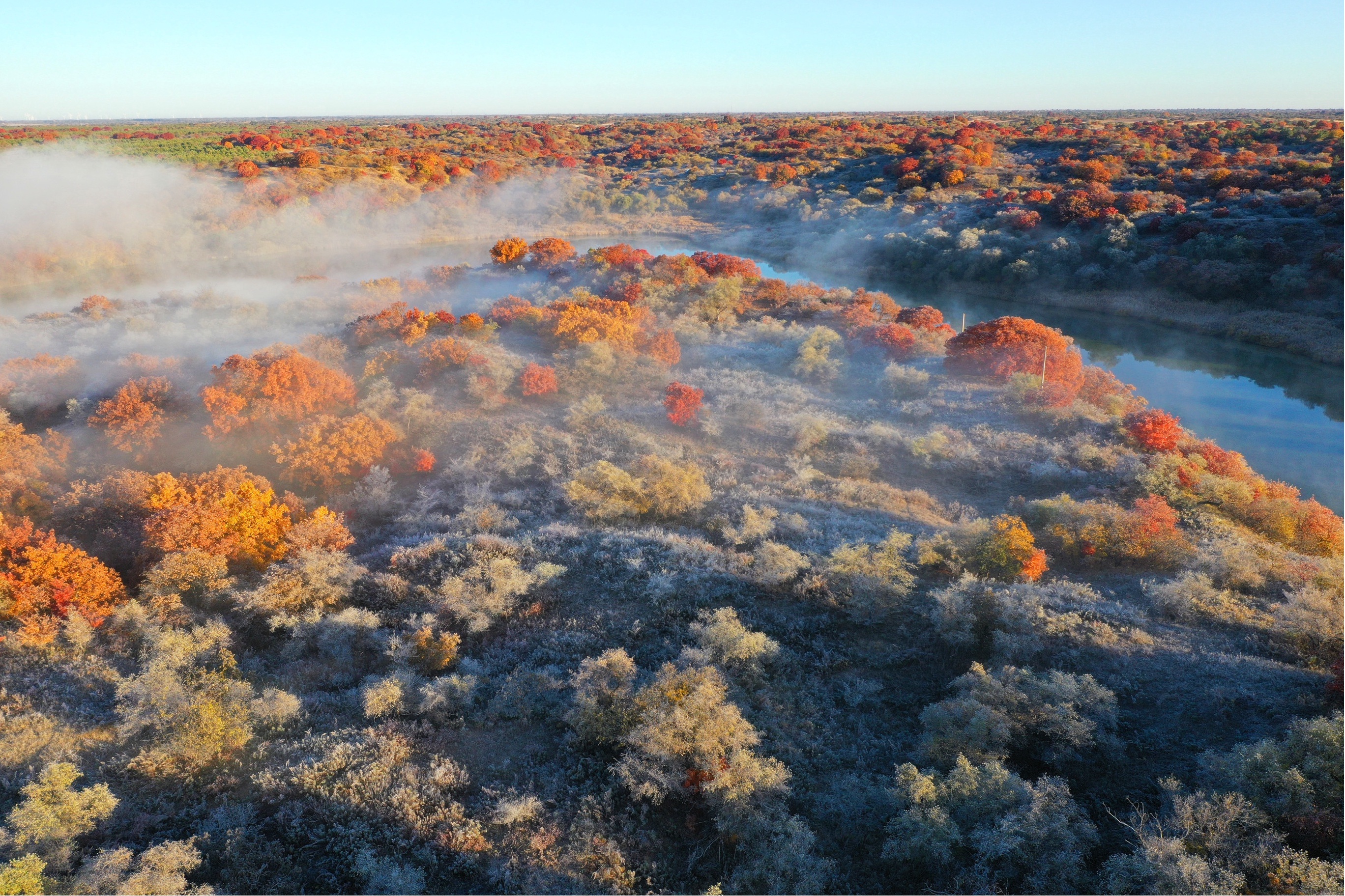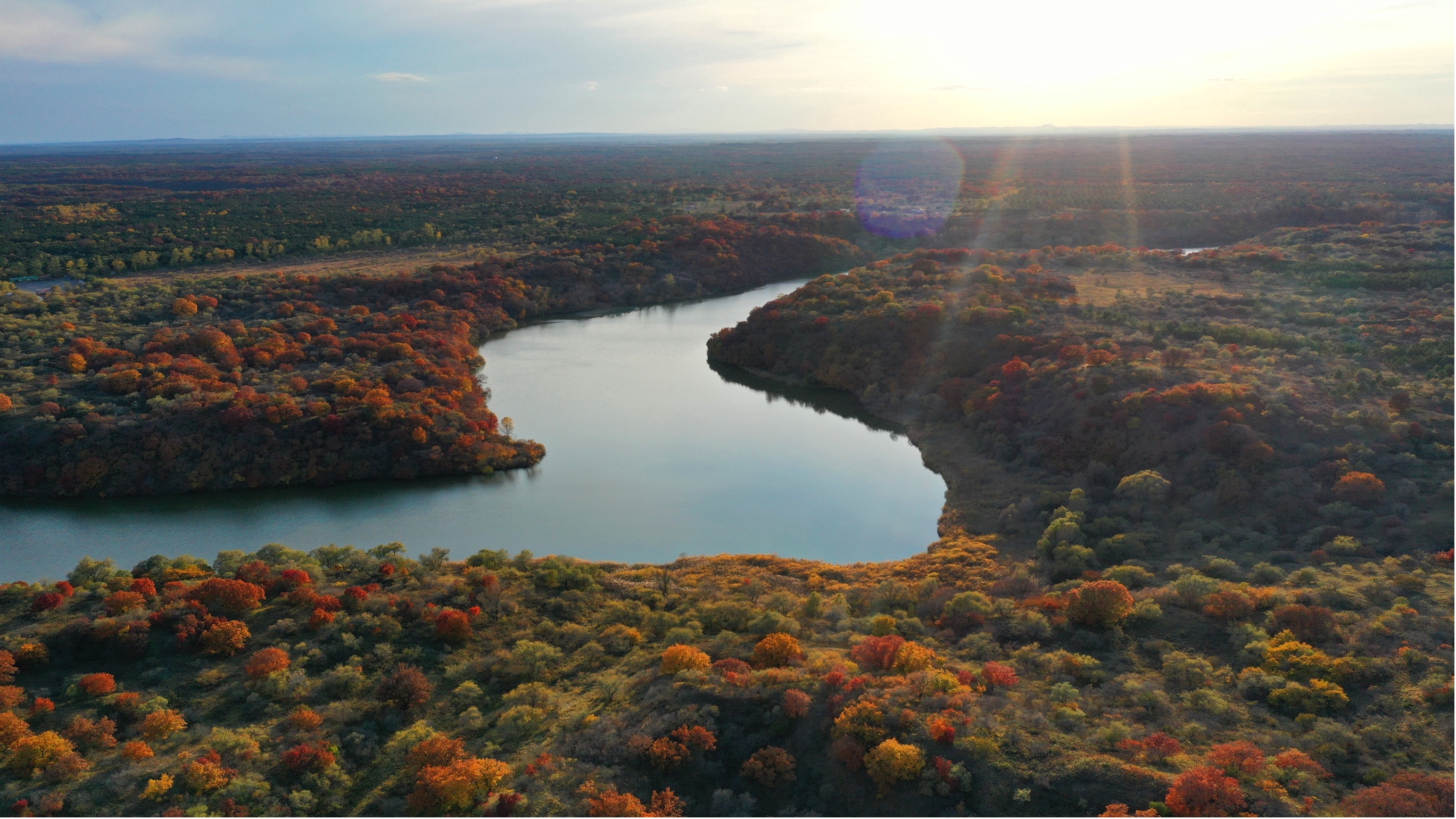 这是10月12日拍摄的大青沟国家级自然保护区秋景(无人机照片)。