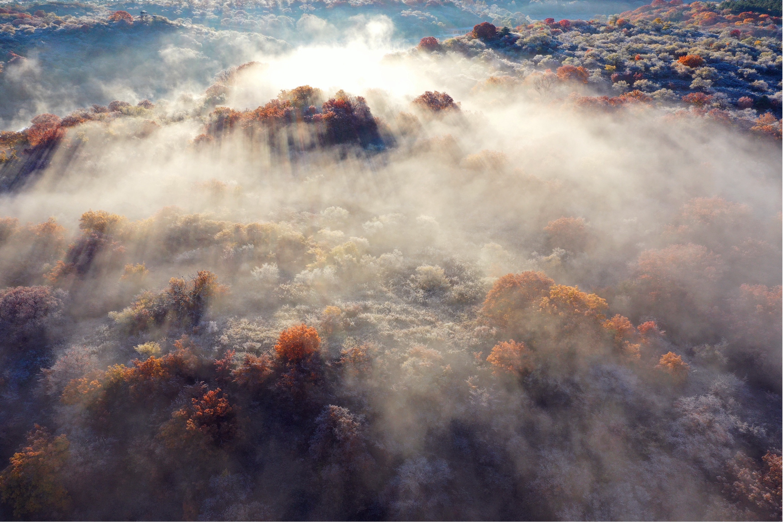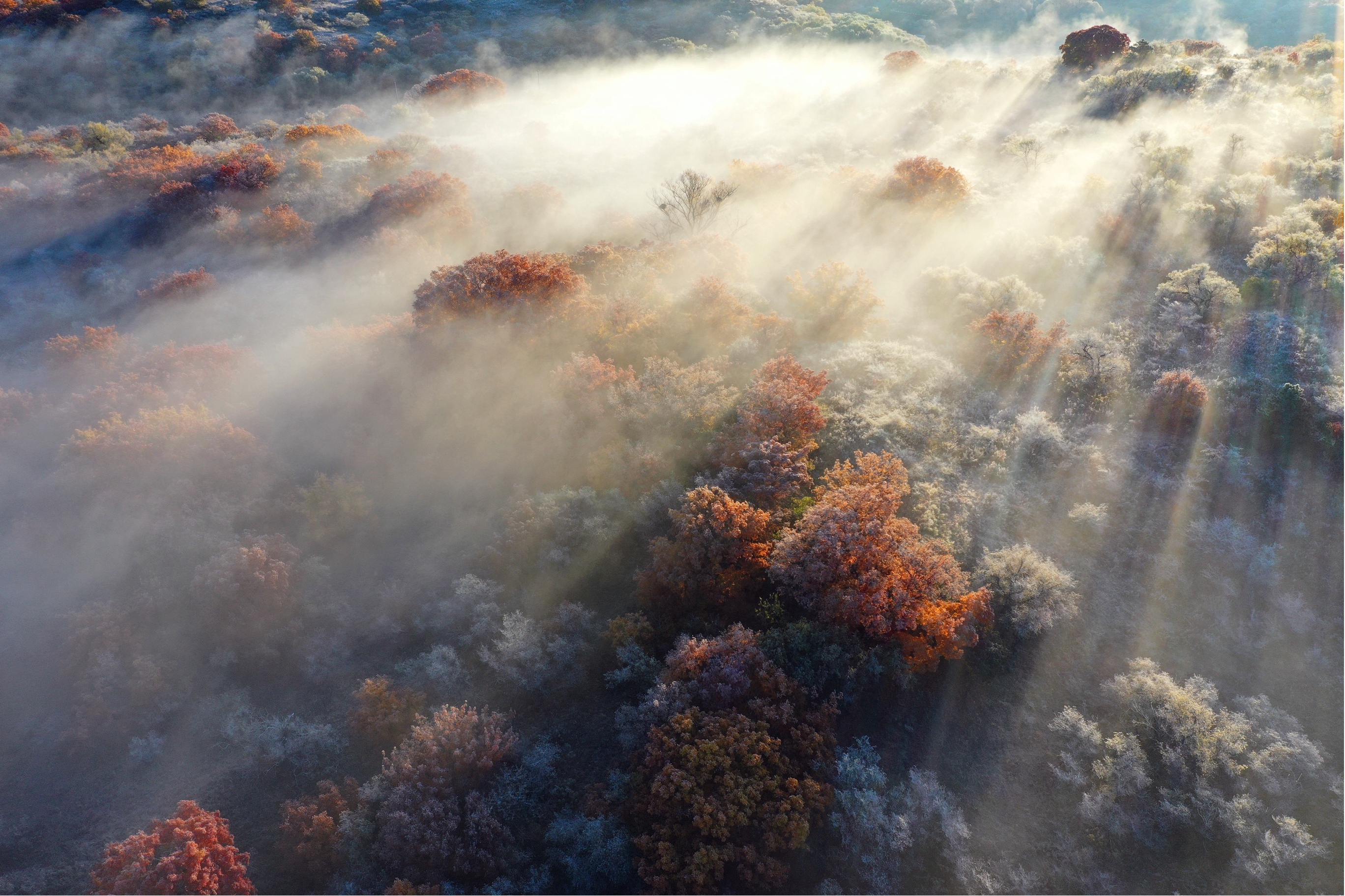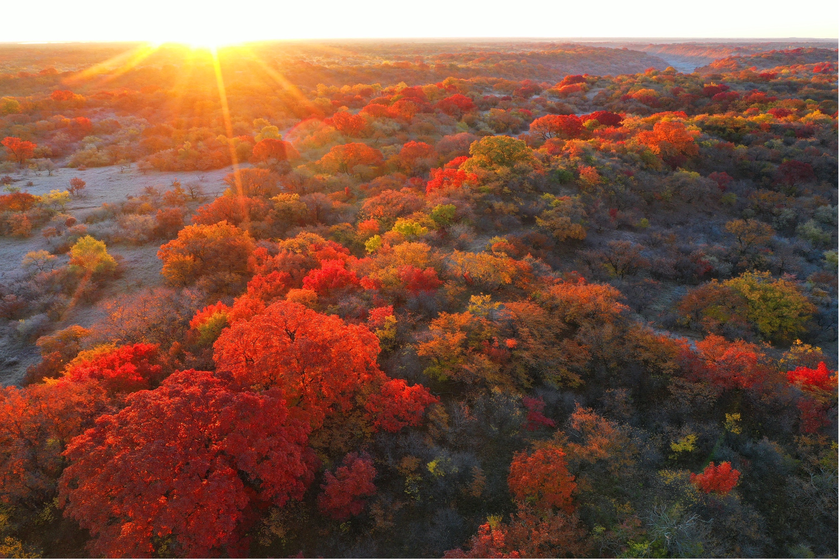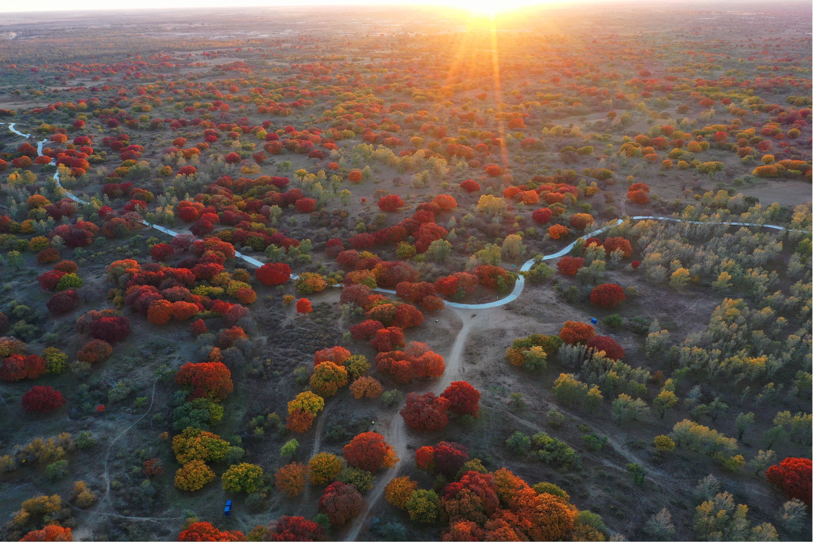 这是10月12日拍摄的大青沟国家级自然保护区内成片的五角枫(无人机照片)。