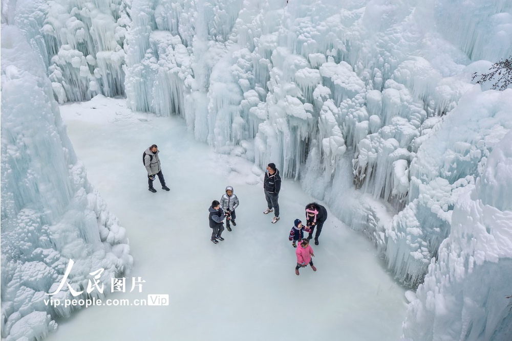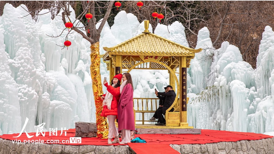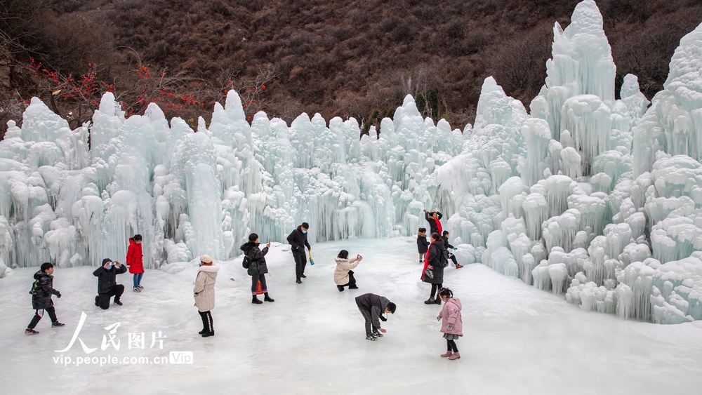 2021年1月11日,山西省运城市永济五老峰景区出现冰挂景观,美不胜收,吸引了众多游客前来游玩。