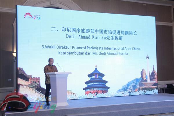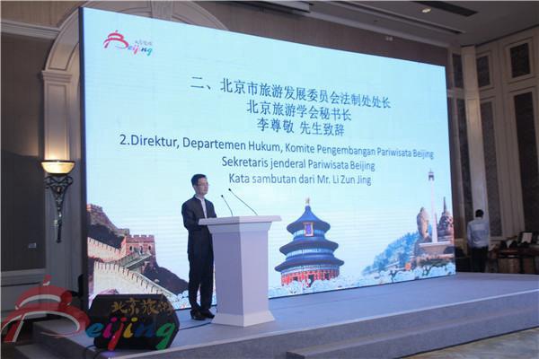 北京市旅游发展委员会法制处处长、北京旅游学会秘书长李尊敬在致辞中表示,印尼是东盟重要成员国,也是“一带一路”21世纪海上丝绸之路的重要国家,两国间的交流与合作日益密切。特别是在旅游方面,近年来,印尼的旅游业发展形势良好,已经成为中国游客喜欢的旅游目的地之一。同时,北京接待印尼游客人数同比增长17.6%。今天我们希望藉此契机推介北京旅游资源,深化两国的旅游合作、让更多的印尼人民了解中国,了解北京;并进一步拓展北京在印尼旅游市场的影响力。
