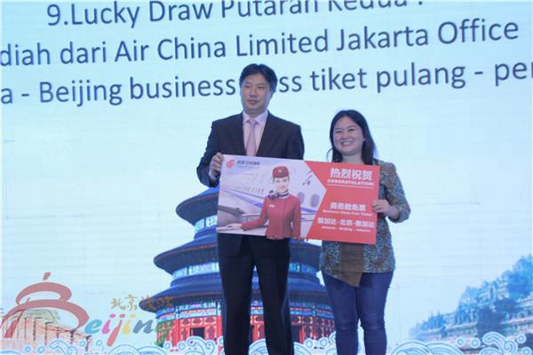 本次活动,孔子学院学生合唱《北京欢迎你》和中国传统经典曲目演奏等表演让来宾对北京旅游文化有了更加深入的了解。由中国国际航空公司雅加达营业部提供的雅加达-北京往返机票以及由中旅国际会议展览有限公司提供的北京三天两晚体验游的抽奖活动更是将推介会气氛推到高潮。