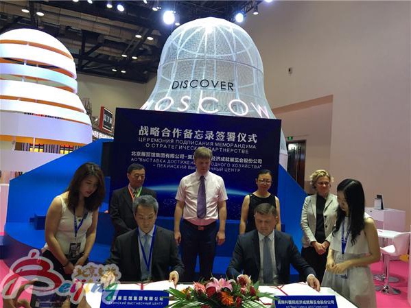 上午,北京展览馆集团有限公司与莫斯科国民经济成就展览会股份公司战略合作签约仪式在莫斯科市展台举行。北京市文化和旅游局副局长王粤、首旅集团副总裁高飞与俄罗斯驻华使馆文化参赞拉宾、莫斯科市旅游发展委员会主任Pronicheva女士见证签约。在中俄建交70周年之际,北京展览馆集团与莫斯科国民经济成就展览会股份公司借助北京国际旅游博览会的平台牵手合作,成为本届展会的一项重要成果。