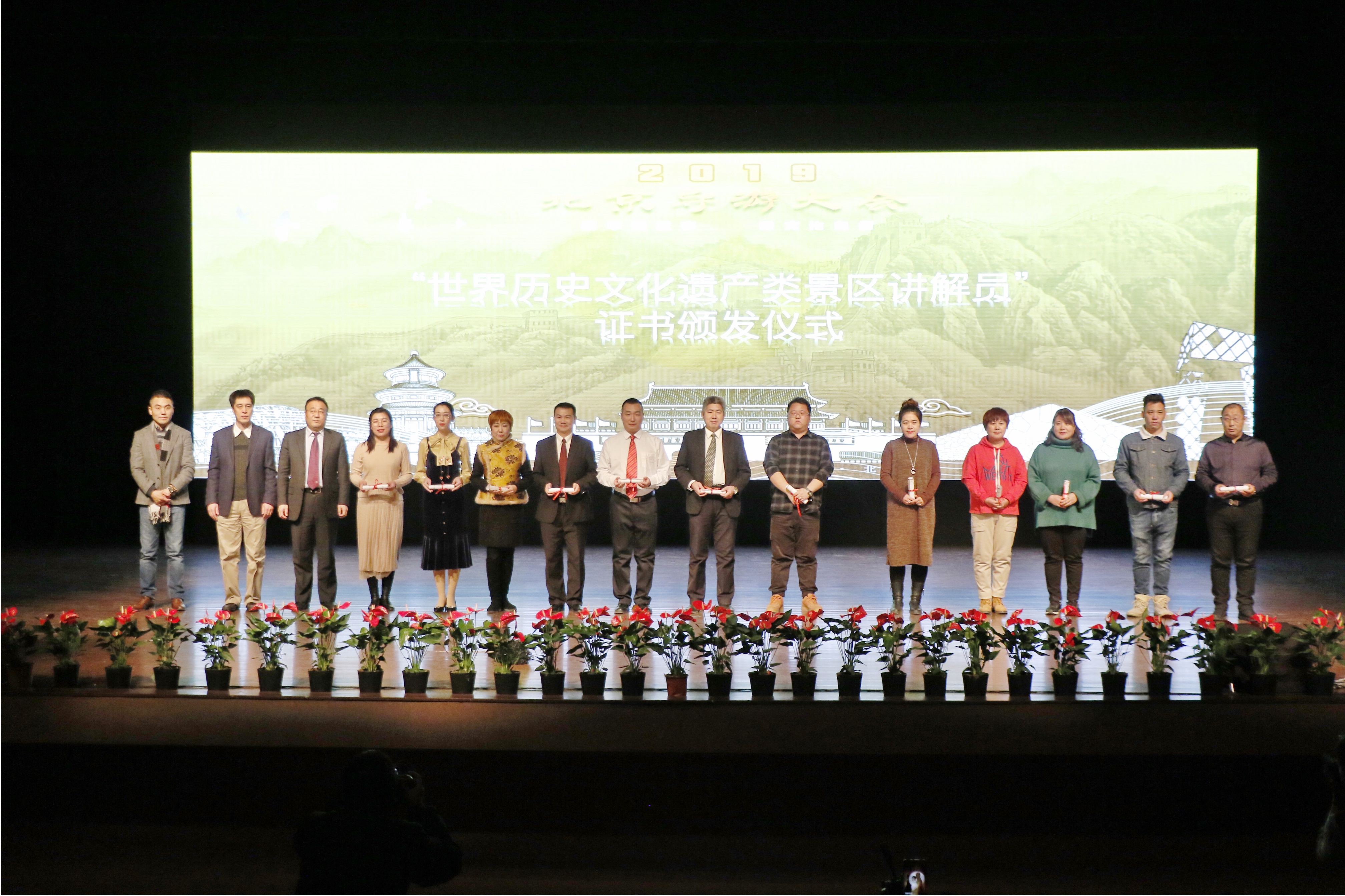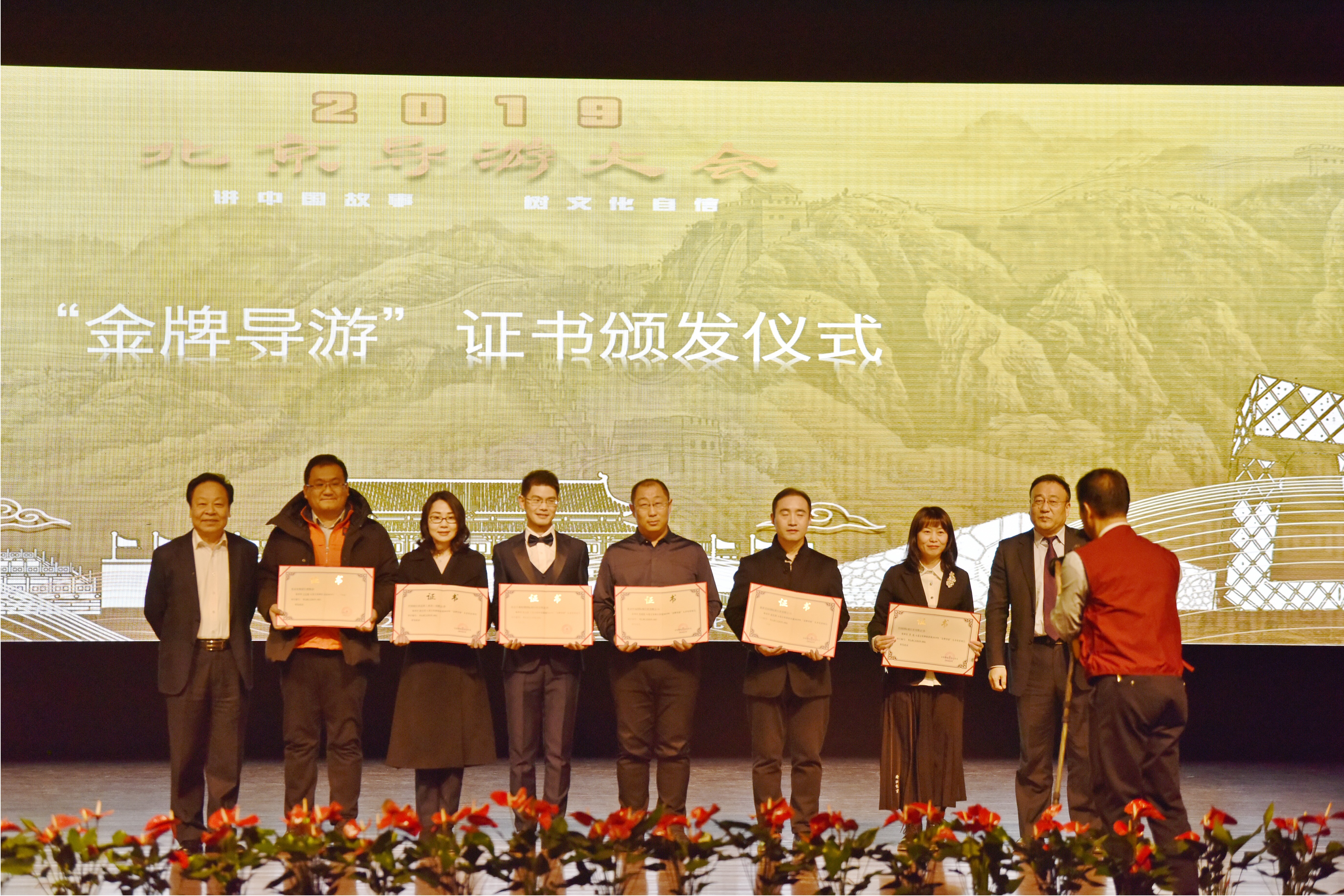 北京导游分会在北京市文旅局、北京市旅游行业协会组织领导下,为了实现导游从业人员讲解服务的规范化、标准化、国际化,开展了“世界历史文化遗产类景区讲解员培训班”,同时在此次导游大会的现场颁发“世界历史文化遗产类景区讲解员培训”证书。