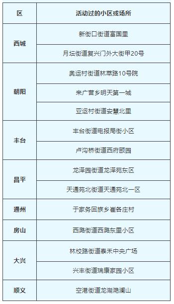 为帮助市民及时了解病例线索,便于社区有针对性地开展防控工作,遏制疫情扩散,北京市疾病预防控制中心发布2月6日新发病例活动过的小区或场所,具体信息如下: