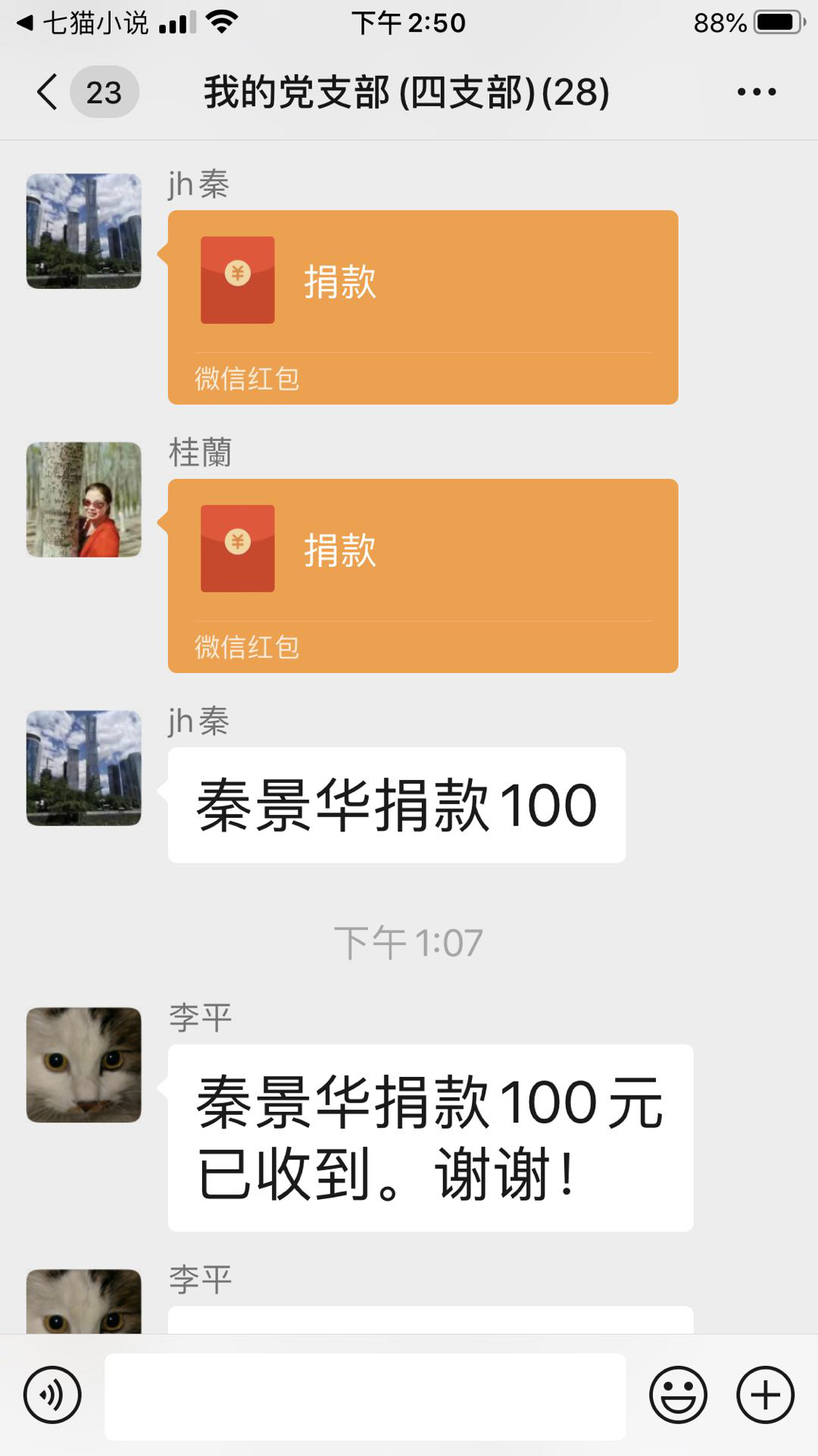 通知一下发,各支部的微信群就第一时间活跃了起来,社区党员们在线转账、积极宣传,一笔笔捐款迅速汇集起来。