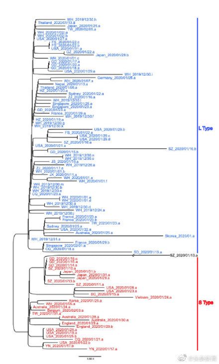 中国科研团队最新发现显示:新冠病毒已产生149个突变点,并演化出了两个亚型,分别是L亚型和S亚型。研究发现,在地域分布及人群中的比例,这两个亚型表现出了很大测差异。其中S型是相对更古老的版本,而L亚型更具侵略性传染力更强。