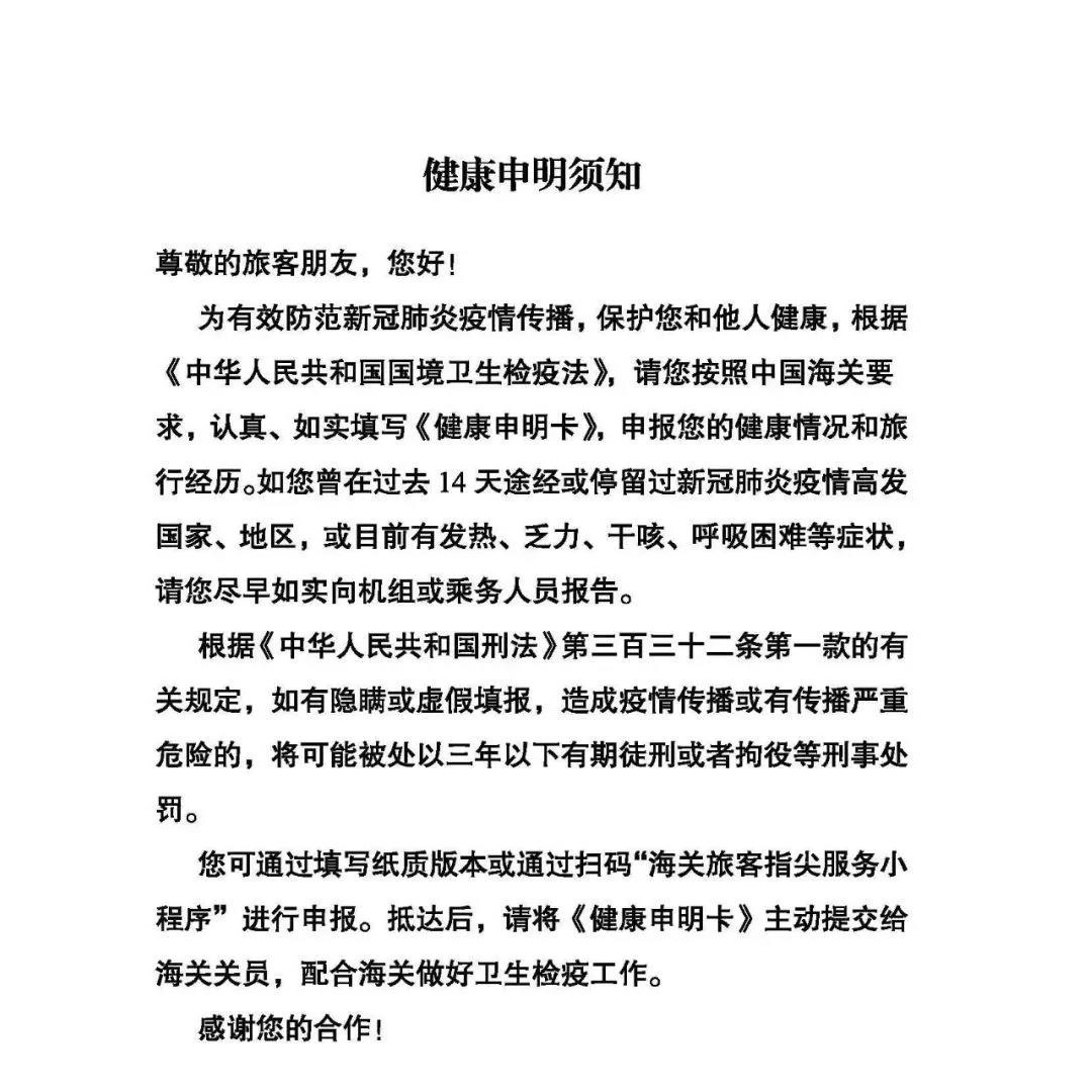 为确保健康申明卡信息准确,请广大出入境人员多花几分钟耐心填写: