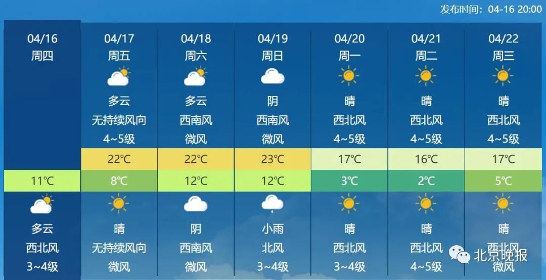 18日白天:晴转阴;北转南风2、3级;平原地区最高气温22℃, 山区最高气温20~22℃。