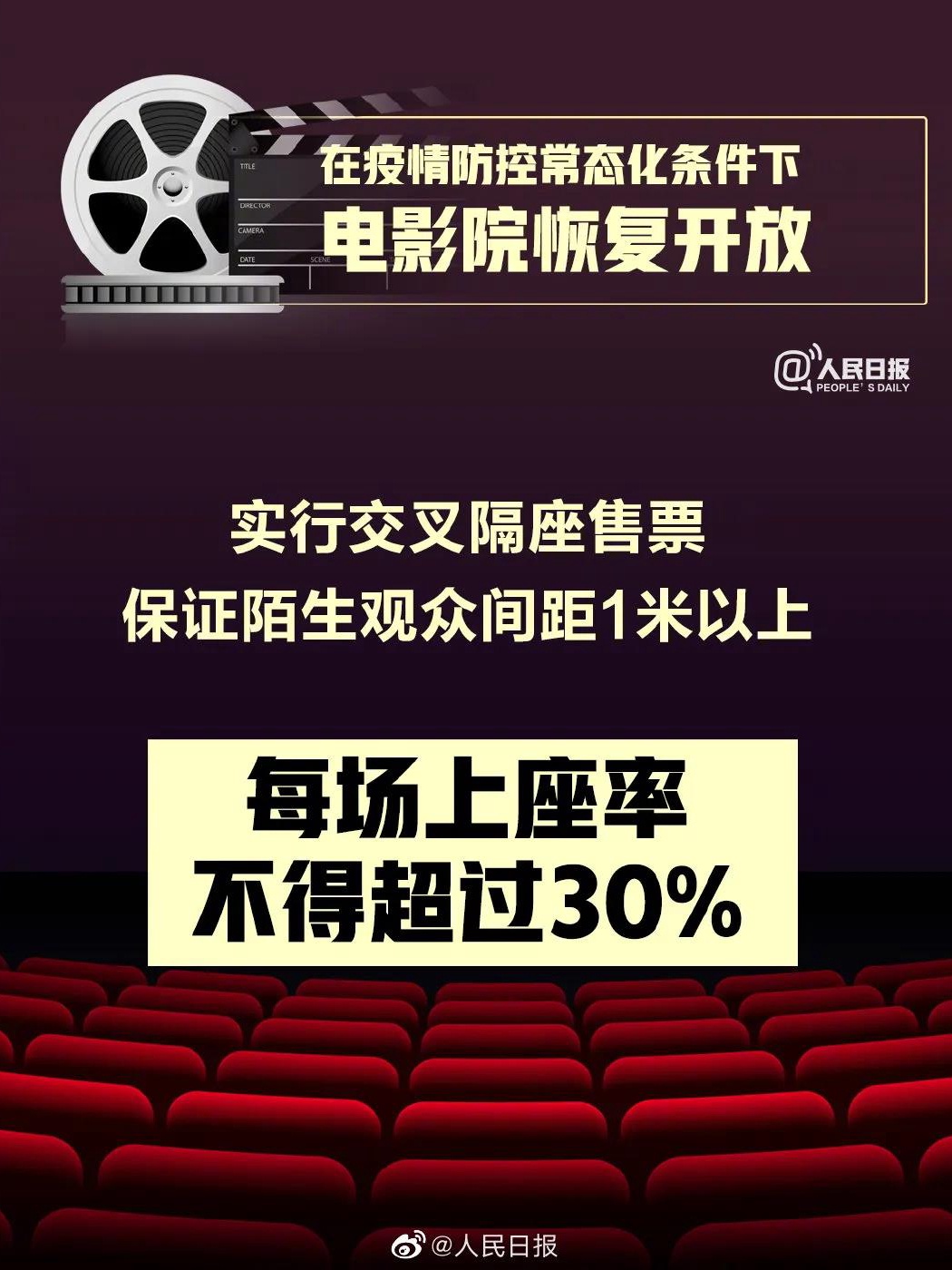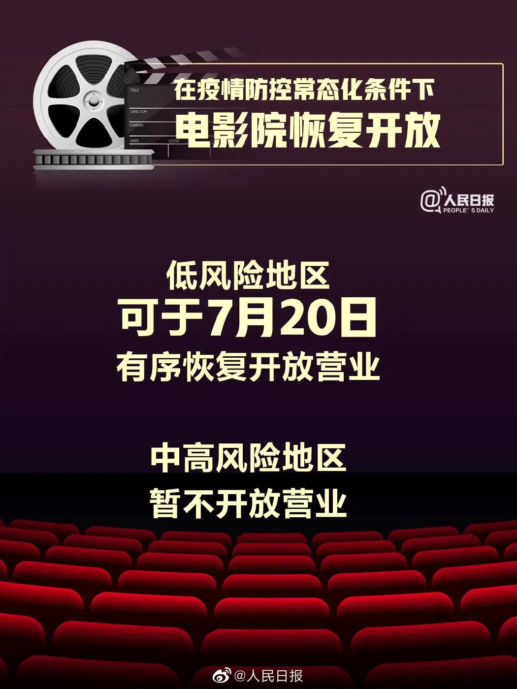 16日,国家电影局下发通知称,低风险地区在电影院各项防控措施有效落实到位的前提下,可于7月20日有序恢复开放营业。中高风险地区暂不开放营业。
