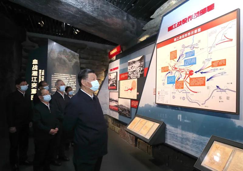 25日上午,习近平来到位于桂林市全州县才湾镇的红军长征湘江战役纪念园,向湘江战役红军烈士敬献花篮并三鞠躬,瞻仰“红军魂”雕塑,参观纪念馆。1934年底,为确保中共中央和中央红军主力渡过湘江,粉碎敌人围歼红军于湘江以东的企图,几万名红军将士血染湘江两岸,这一战成为事关中国革命生死存亡的重要历史事件。习近平表示,我到广西考察的第一站就来到这里,目的是在全党开展党史学习教育之际,缅怀革命先烈,赓续共产党人精神血脉,坚定理想信念,砥砺革命意志。革命理想高于天,理想信念之火一经点燃就会产生巨大的精神力量。红军将士视死如归、向死而生、一往无前、敢于压倒一切困难而不被任何困难所压倒的崇高精神,永远值得我们铭记和发扬。在实现第二个百年奋斗目标的新长征路上,我们要抱定必胜信念,勇于战胜来自国内外的各种重大风险挑战,朝着实现中华民族伟大复兴的目标奋勇前进。