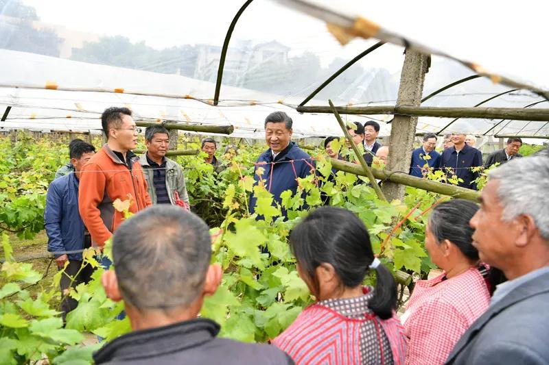 习近平步行察看村容村貌,并到村民王德利家中看望,同一家人围坐在一起聊家常。王德利告诉总书记,他们家种了12亩葡萄,农闲时外出务工,去年家庭收入超过14万元。习近平听了十分高兴。他指出,经过全党全国各族人民共同努力,在迎来中国共产党成立一百周年的重要时刻,我国脱贫攻坚战取得全面胜利。好日子都是奋斗出来的。希望你们依靠勤劳智慧把日子过得更有甜头、更有奔头。要注重学习科学技术,用知识托起乡村振兴。离开村子时,乡亲们高声向总书记问好。习近平向大家挥手致意。他深情地说,让人民生活幸福是“国之大者”。全面推进乡村振兴的深度、广度、难度都不亚于脱贫攻坚,决不能有任何喘口气、歇歇脚的想法,要在新起点上接续奋斗,推动全体人民共同富裕取得更为明显的实质性进展。