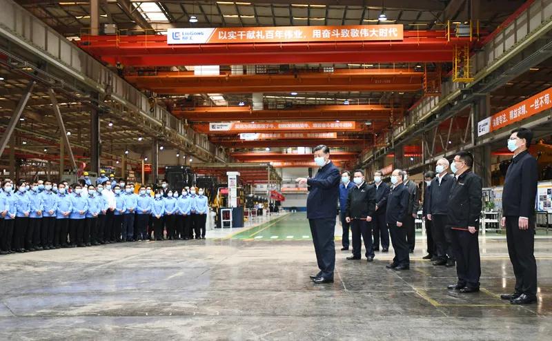 当天下午,习近平来到柳州市考察调研。在广西柳工集团有限公司,习近平先后走进公司展厅、研发实验中心、挖掘机装配厂等,听取企业发展情况介绍,察看主要产品展示,同企业职工和技术研发人员亲切交谈。习近平强调,制造业高质量发展是我国经济高质量发展的重中之重,建设社会主义现代化强国、发展壮大实体经济,都离不开制造业,要在推动产业优化升级上继续下功夫。只有创新才能自强、才能争先,要坚定不移走自主创新道路,把创新发展主动权牢牢掌握在自己手中。要坚持党对国有企业的全面领导,坚持加强党的领导和完善公司治理相统一,在深化企业改革中搞好党的建设,充分发挥党组织在企业改革发展中的领导核心作用。