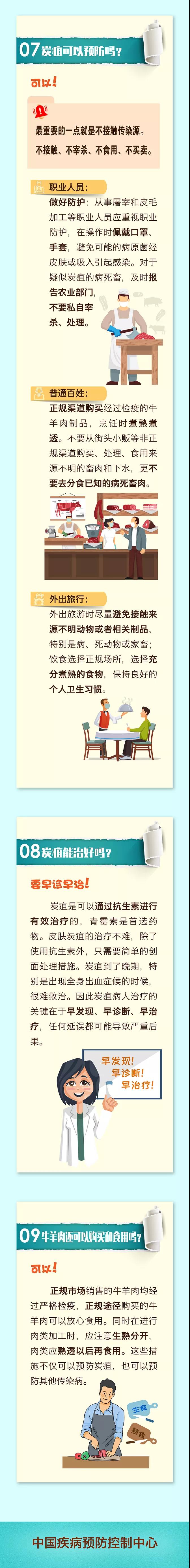 中国疾控中心提醒,预防炭疽,最重要的一点就是不接触传染源。炭疽的传染源主要是病死动物,发现牛、羊等动物生病或突然死亡,不接触、不宰杀、不食用、不买卖,立即报告当地农业畜牧部门,由该部门进行处理。