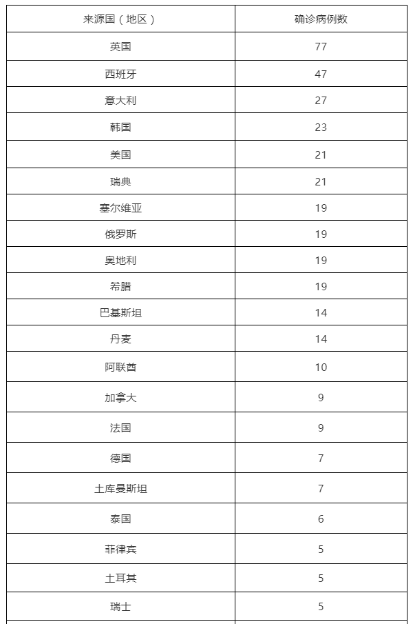 境外输入确诊病例来源国(地区)情况