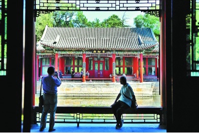 北海公园画舫斋日前试开放,迎来第一批游客。画舫斋建于1757年,原是清朝行宫,乾隆将江南园林意境融入画舫斋中,既不失北方皇家宫苑特色,又再现了江南园林的情调。画舫斋的开放意味着北海公园静心斋、濠濮间、画舫斋三个园中园实现了全部开放。 本报记者 邓伟摄