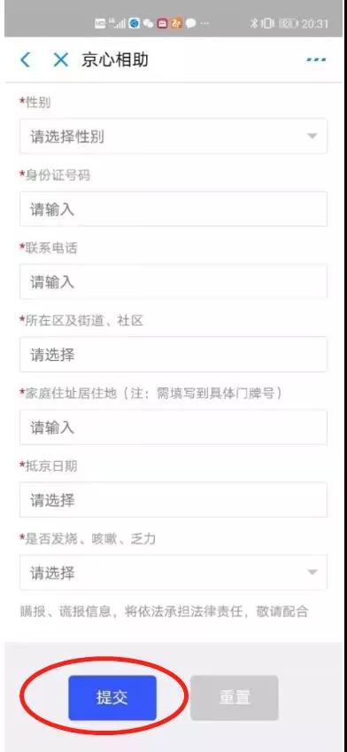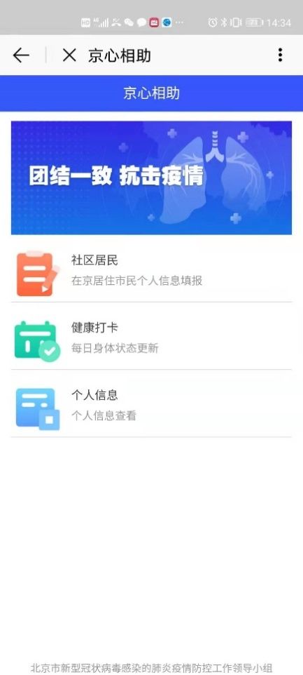 1.来京人员须向所在社区(村)报到,通过 “京心相助”信息采集平台,完成个人信息登记工作。
