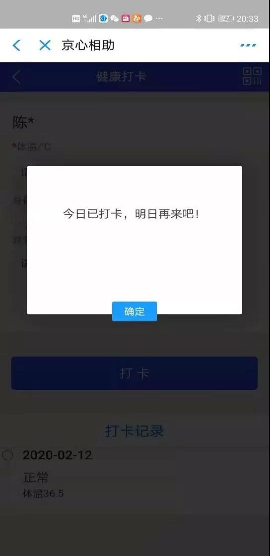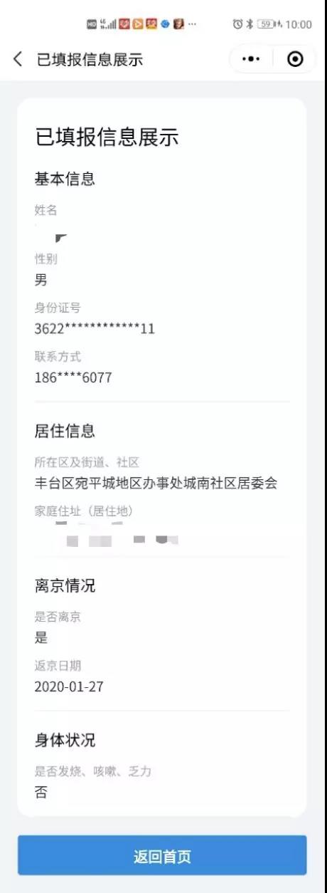 返京人员可使用小程序“京心相助”,通过识别短信推送、社区发放的二维码及通过微信、支付宝等程序,在手机端填写姓名、联系方式、来源地、来京时间等关键信息,实现“零接触”线上报到,减少聚集,降低交叉感染概率,有效缓解基层压力。采集到的信息将直接存入社区防控信息系统。居民可在应用程序内打卡健康状况。