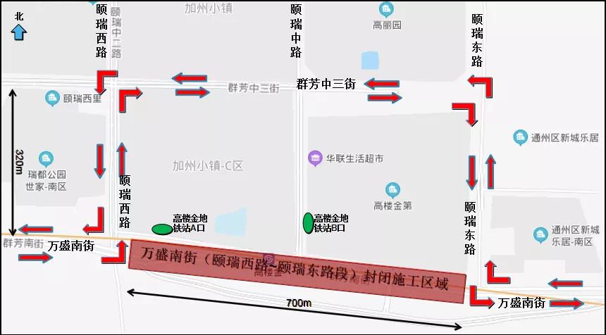 封闭期间,通行车辆可由颐瑞中二路、群芳中三街、颐瑞东路绕行通行。