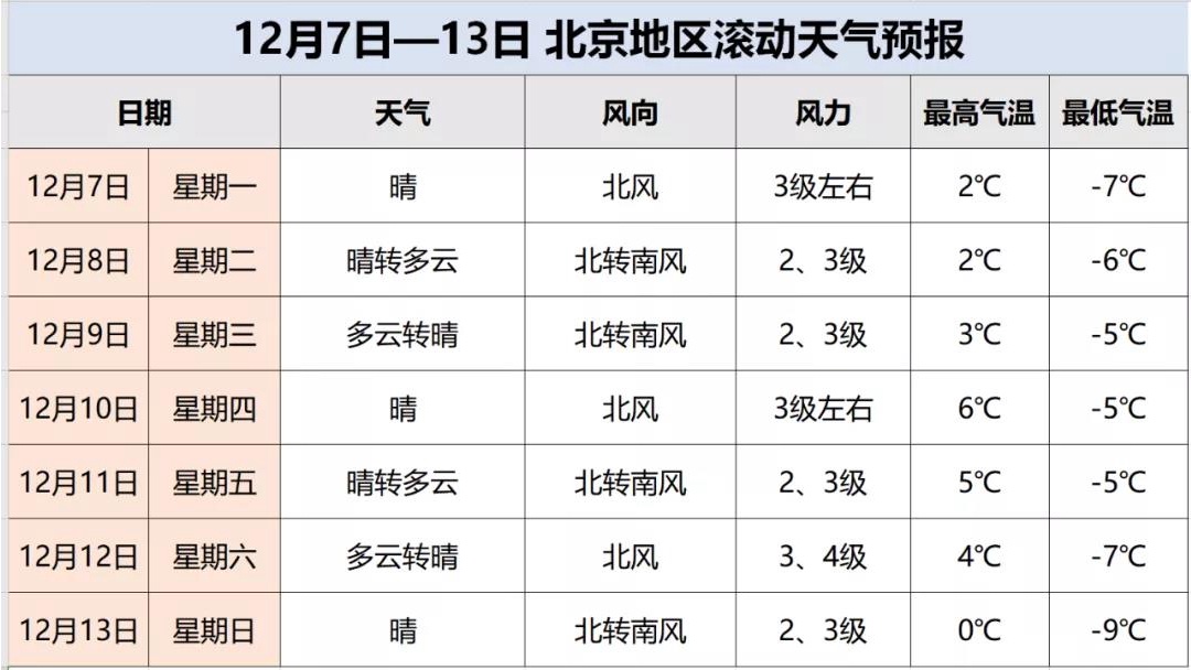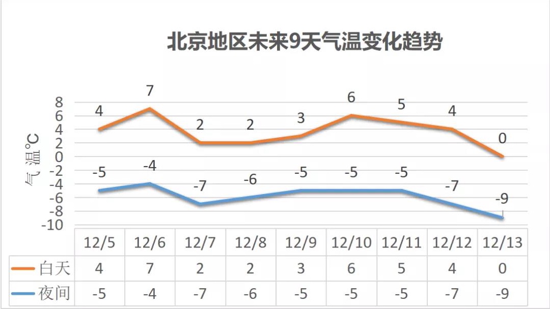预计7日最低气温为-7℃,13日最高气温预计将下降到0℃,最低气温逼近-10℃。