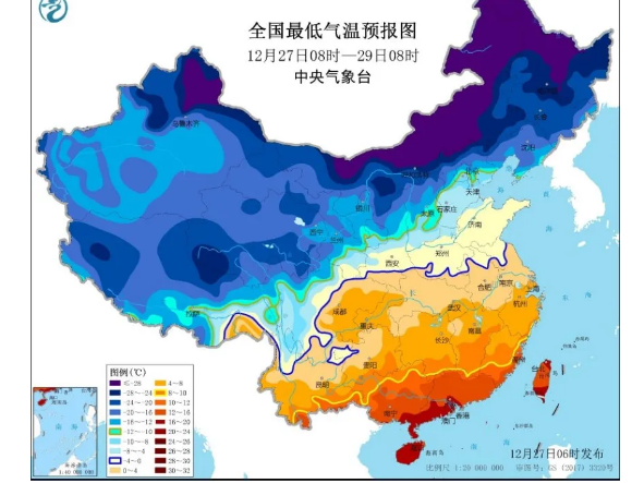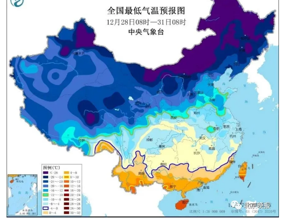 在寒潮天气影响下,29日至30日白天的最高气温将迅速跌至-6℃至-5℃,夜间最低气温降至-13℃左右。这个温度到底有多冷?可以想象一下冰箱冷藏室温度,一般设定在4℃至0℃,这就意味着这周前期室外气温将比冰箱冷藏室气温还要低,所以,出门保暖,势在必行!