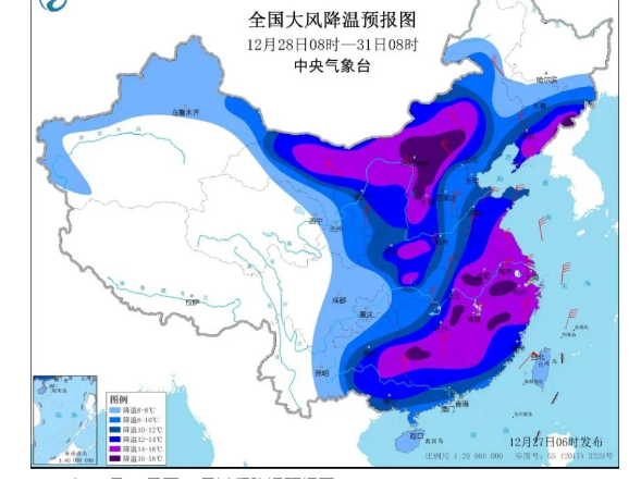 考虑到此次寒潮天气过程具有影响范围广、降温剧烈、气温低、大风持续时间长等特点,我国中东部大部地区将出现入冬以来最寒冷天气,经综合研判和应急会商,中国气象局启动重大气象灾害(寒潮)三级应急响应。