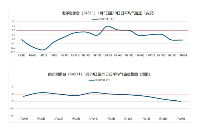 据气象北京的图表中可以看出,小寒节气期间,1月5日至19日,北京地区冷空气活动频繁,气温波动大,日平均气温较常年同期偏低。大寒节气期间,1月20日至2月2日,虽仍有冷空气活动,但气温整体较平稳,与小寒节气相比,日平均气温整体升高不少。