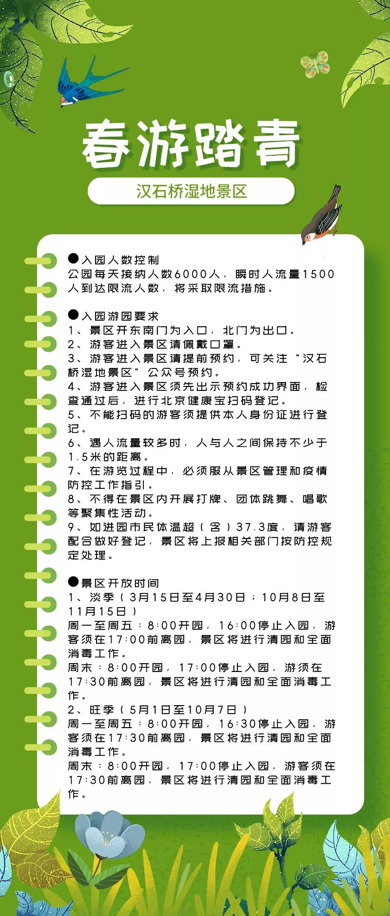 汉石桥湿地景区于 2021年3月15日(周一)有序恢复开园。